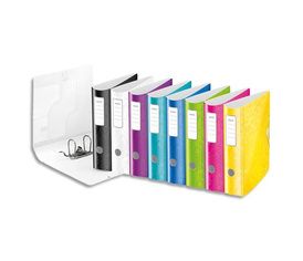 En polypropylène recyclé. Dos rond de 7,5 cm. Pochette transparente en 2ème de couverture + porte-stylos.