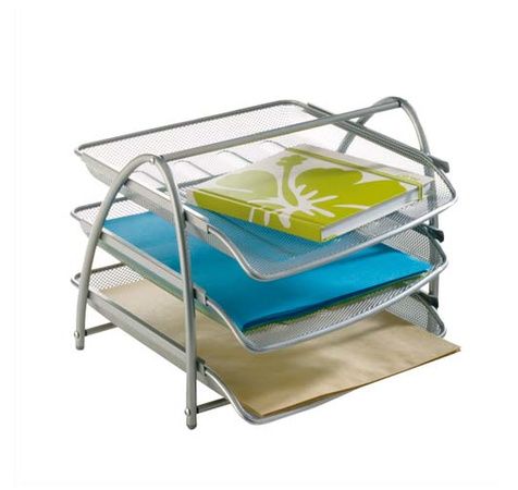 Set De 3 Corbeille À Courrier En Metal Argenté Meshtray3 M