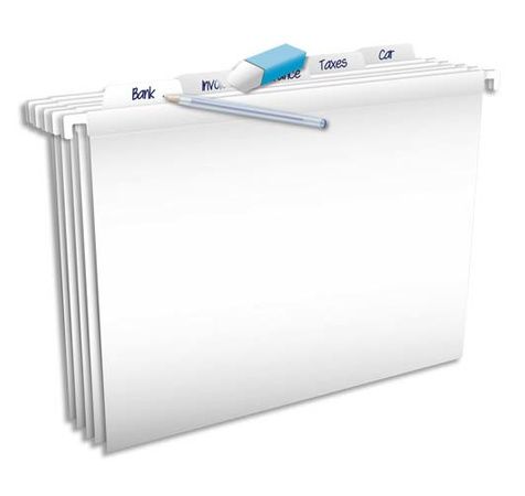 Polypropylène 3/10ème. Tiroir Fond V. Entraxe 33 cm. Onglets intégrés inscriptibles au stylo-bille et effaçables avec une gomme. Coloris blanc. Paquet de 5.