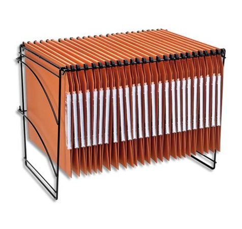 En métal laqué noir. Superposable ou juxtaposable pour une utilisation en armoire ou sur le bureau. Peut contenir des dossiers tiroir ou armoire. Capacité : environ 25 dossiers.