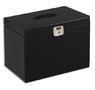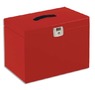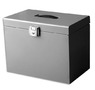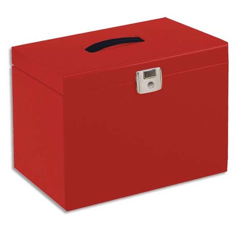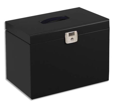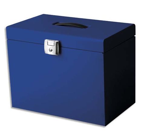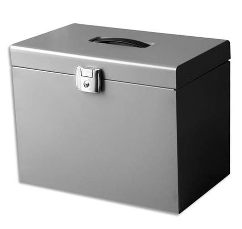 En métal très résistant (protection non-feu M1). Fermeture à clé. Poignée de transport rétractable. Livrée avec 5 dossiers suspendus. Dim: 36,5x28x22 cm