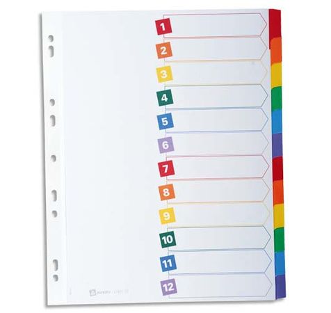 Intercalaires 12 Touches . En Carte Blanche, Onglets Plastifiés De Couleur. Format A4