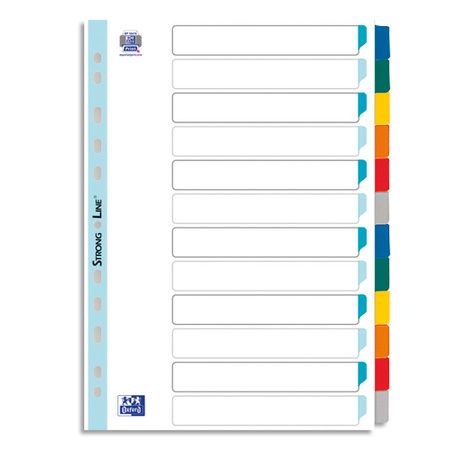 En carte renforcée sur les perforations. Onglets renforcés larges et colorés, effaçables et réinscriptibles pour corriger une erreur ou réutiliser les intercalaires.
