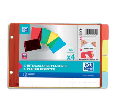 ELBA Jeu d'intercalaires en PVC 14/100e. 4 onglets personnalisables, pour fiches bristol A6.
