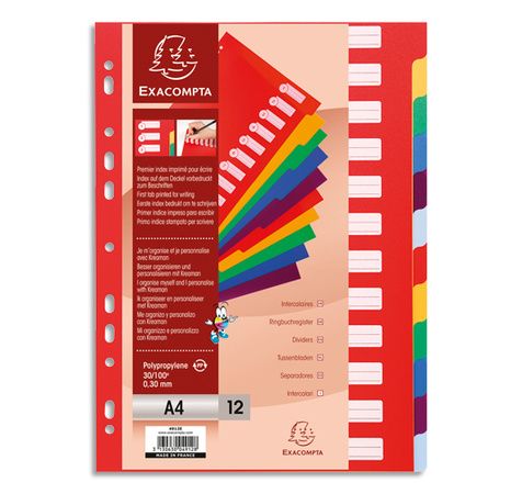 Intercalaire En Polypropylène, Format A4, 12 Positions Assortis Pastel