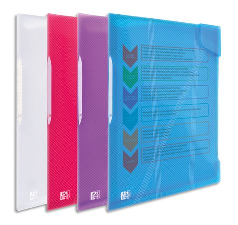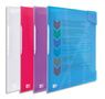 En polypropylène 25/100ème semi rigide . Fermeture sécurisée en coin. Zone de titre réinscriptible. Capacité : 50 feuilles. Tient debout parfaitement. Couleurs assortis : rose, turquoise, violet, incolore.