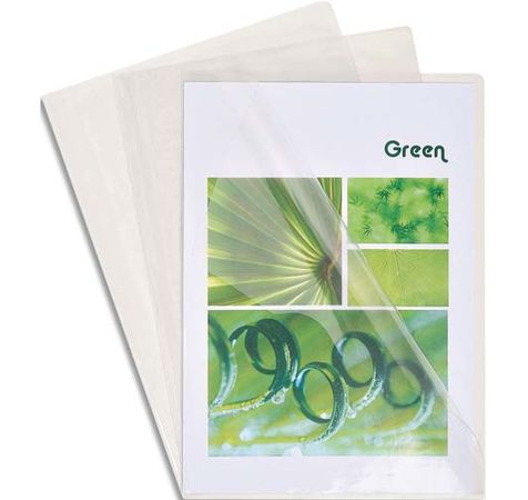 En PVC lisse 18/100e translucide. Coloris cristal. Boîte de 50.