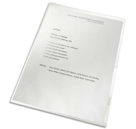 En polypropylène grainé 13/100e. 100 % recyclée et recyclable. Incolore. Boîte de 100.