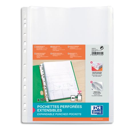 Sachet De 10 Pochettes Perforées A4 Pour Plan Sans Rabat
