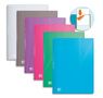 Couverture en polypropylène lisse ligné 5/10e. Pochettes intérieures en polypropylène 5/100e lisse, ouverture en angle, format A4. Coloris assortis : bleu, rose, gris, violet, vert, incolore.