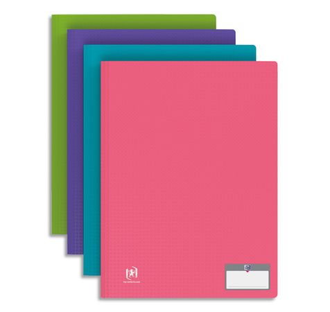 Couverture en polypropylène opaque 3/10e (format A4) et 7/10e (format A3). Grain structure satiné, anti– traces. Pochettes intérieures en polypropylène 6/100e lisse, ouverture en angle. Assortis tradition : bleu, rouge, vert, noir. Assortis style : bleu lavande, vert anis, violet, rose, turquoise.