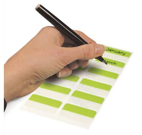 Onglet auto-adhésif permanent et résistant. Ecriture possible directement sur l'onglet. Dimensions (h x L) : 12 x 40 mm. Coloris assortis : bleu, vert, rouge, jaune.