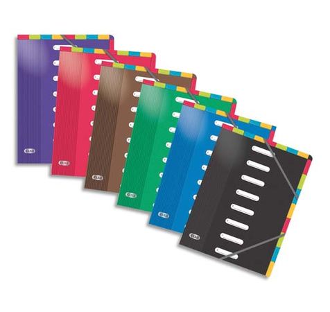 En carte pélliculée. Intérieur carte multicolore. 8 touches neutres en double entrée. Elastique de fermeture. Dimensions : 31,5 x 24,5 cm. Coloris assortis : bleu, rouge, vert, violet, noir, marron.