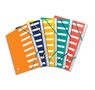 Couverture en carte lustrée 5/10e. Intérieur carte multicolore, touches neutres. Fermeture par élastique. Possibilité d'écrire le titre des onglets en 1ère de couverture.