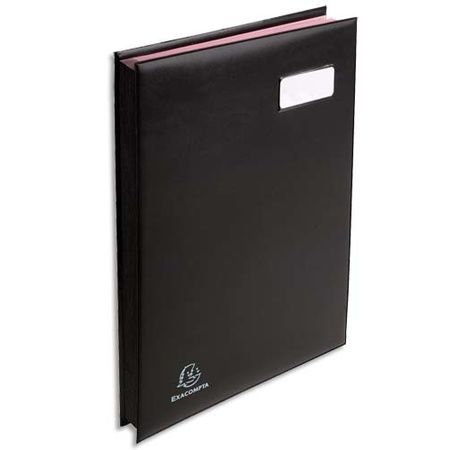Couverture en PVC expansé. Dos à soufflet renforcé. Compartiments en buvard rose 360 g avec fixapage , système de fixation des feuillets. Encoches renforcées dans la partie inférieure des buvards. Porte-étiquette en 1ère de couverture.
