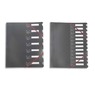 Couverture en polypropylène 5/10e. Intérieure en carte 220 g, touches neutres. Fenêtres découpées avec indexation sur la 1ère de couverture. Repères numériques. Dos extensible . Fermeture par élastique.