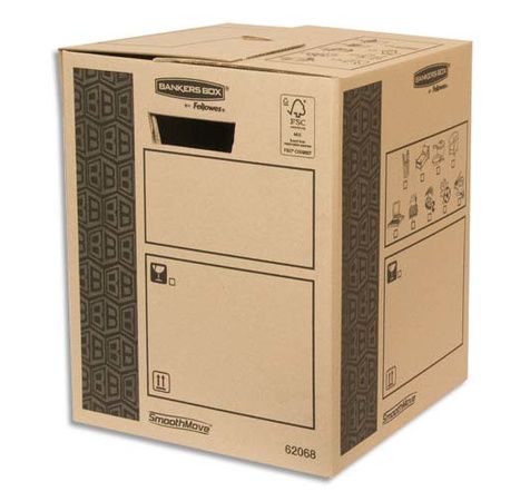 En carton ondulé cannelure double pour les cotés et triple pour la base. 100 % recyclé et recyclable. Montage automatique. Poignées renforcées pour confort et résistance accrue. Réutilisable, se ferment sans adhésif. Facile à ouvrir et refermer, empilables jusqu'à 5 caisses. Charge maximale jusqu'à 25 kg par caisse.