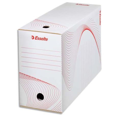 En carton ondulé blanc imprimé rouge. Grilles d'indexation et œillets de préhension. Format élargi.