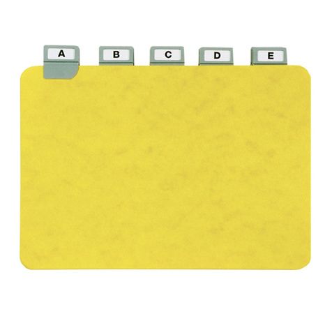 En carte lustrée jaune 7/10e. Onglets métal à clipper. Livré avec planche alphabétique prédécoupée.
