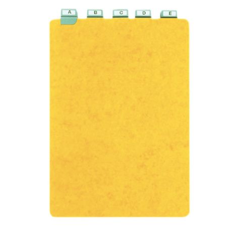 En carte lustrée jaune 7/10e. Onglets métal à clipper. Livré avec planche alphabétique prédécoupée.