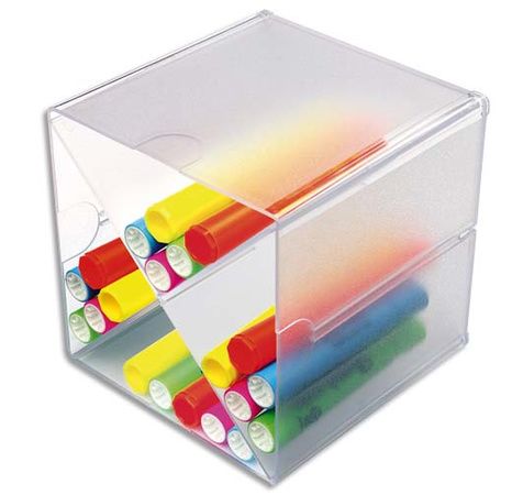 En polystyrène. Peut être empilé à la verticale ou à l'horizontale.