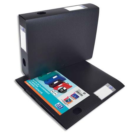 En polypropylène opaque 7/10e. Grain structure effet tissé, anti-traces. Porte-étiquette et étiquettes sur la tranche latérale et frontale. Oeillet de préhension. Fermeture par bouton pression. Livrées non montées, assemblage très simple et rapide.