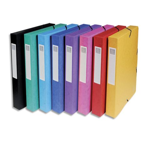 Boîte de classement EXABOX en carte lustrée dos de 4 cm. Coloris assortis