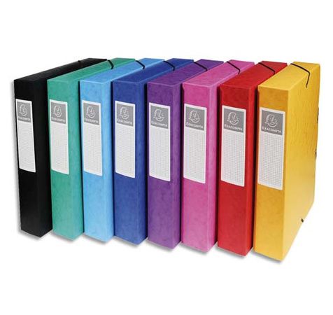 Boîte de classement EXABOX en carte lustrée dos de 6 cm. Coloris assortis
