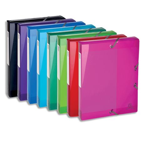 En polypropylène translucide 7/10e, finition brillante. Etiquette de dos adhésive, fermeture par 2 élastiques gris.