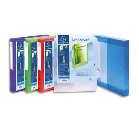 Boîte de classement KREACOVER personnalisable en polypro dos 4cm coloris assortis