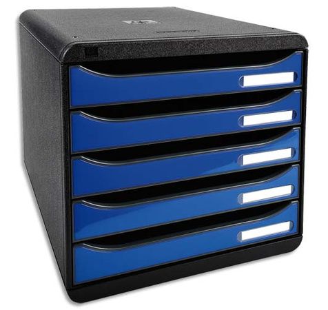 Module De Classement 5 tiroirs Iderama Dim : L27,8xH26,7xP34,7cm Noir/Bleu glossy