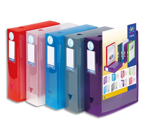 Boîte "PROPYGLASS" et chemise "PROPYSOFT" En polypropylène translucide. Pochette de personnalisation en 1ère de couverture. Dos 6 et 8 cm, coloris assortis : Incolore, bleu, rouge, gris, violet.