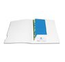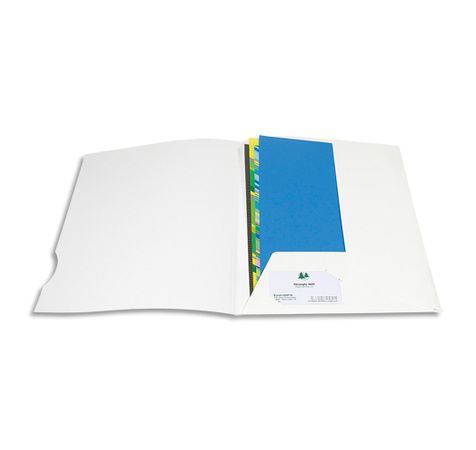 En carte 250 g brillant. 2 rabats. Encoche de préhension et pour cartes de visites. Dimensions : 24 x 32 cm. Pour format A4. Conditionnement conseillé par 1