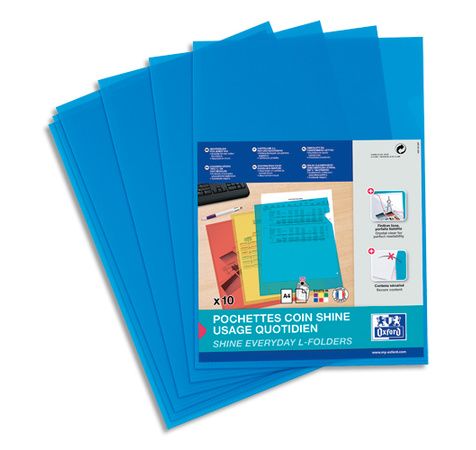 Sachet 10 pochettes coin PP lisse 12/100e. Coloris bleu