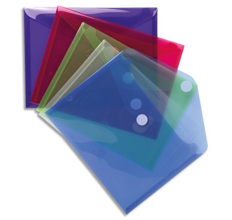 Sachet de 5 pochettes-enveloppes scratch A5 en polypropylène 2/10e. Coloris assortis