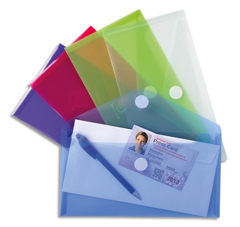 Sachet de 5 pochettes-enveloppes scratch DL en polypropylène 2/10e. Coloris assortis