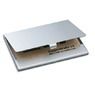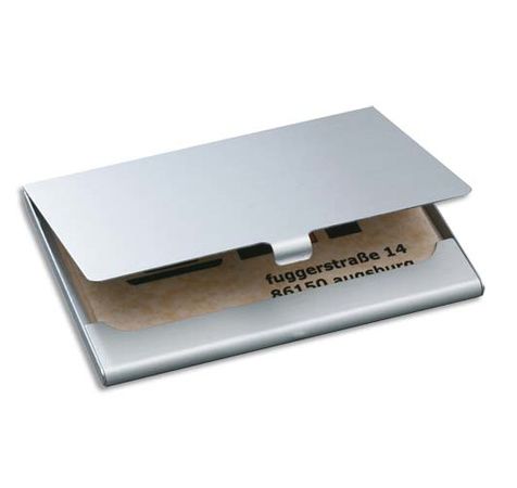 En aluminium de qualité supérieure à finition mate. Idéal en déplacement grâce à son design extra plat et son faible poids. Pour 15 ou 30 cartes de visite jusqu'au format 9 x 5,7 cm.