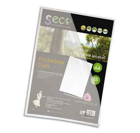 Sachet de 25 pochettes coins PP 12/100e grainé biodégradable transparent