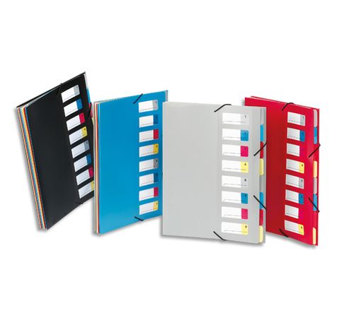 En polypropylène 5/10e. 8 touches neutres. Dos à soufflets. Indexation sur la 1ère de couverture. Avec bloc perforé quadrillé 5x5, porte-stylo et pochette 2 rabats en 3eme de couverture. Fermeture par élastique.