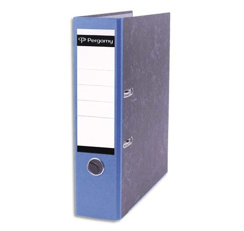 Classeur à levier en carton gris int/ext marbré. Dos 8cm. Format A4. Dos bleu