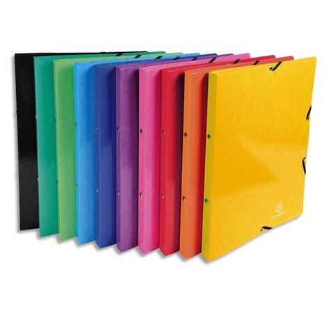 Couverture en carte lustrée pelliculée 7/10e. Dos 2cm, mécanisme 4 anneaux ronds Ø 15 mm. Avec élastiques pour maintenir et protéger le contenu. Coloris assortis : bleu clair, bleu foncé, jaune, noir, orange, rose, rouge, vert clair, vert foncé, violet. Dimensions : 32 x 25 cm. Pour format A4.