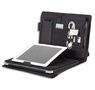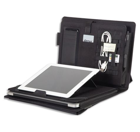 En polyester gris. Compartiment pour ordinateur portable au format 13,3 pouces et téléphone compatible avec tous les types de smartphones. Rangements multiples, porte-stylos, porte cartes de visite. Sangle de trolley et poignée.