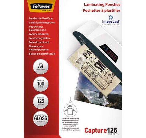 Technologie ImageLastTM : pochettes avec flèche directionnelle qui disparait complétement une fois le document plastifié. Les flèches indiquent le sens correct d'insertion de la pochette afin d'éviter tout bourrage lié à une mauvaise insertion. Compatibles avec toutes les marques de plastifieuses.