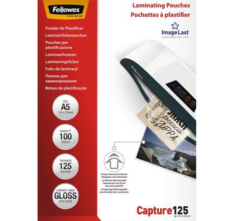 Technologie ImageLastTM : pochettes avec flèche directionnelle qui disparait complétement une fois le document plastifié. Les flèches indiquent le sens correct d'insertion de la pochette afin d'éviter tout bourrage lié à une mauvaise insertion. Compatibles avec toutes les marques de plastifieuses.