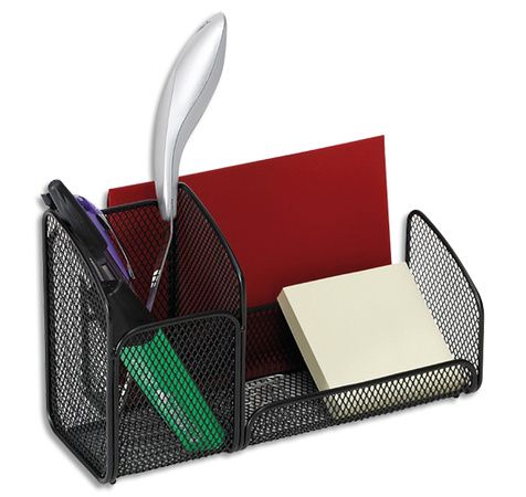 Organiseur de bureau Meshtri Trieur à 3 compartiments : Pot à crayon, Porte courrier, Espace de rangement téléphone & petits accessoires. - Structure ultra solide en métal Mesh. Dimensions (l x h x p) : 21 x 12.5 x 10 cm. Noir