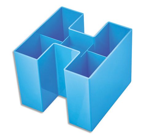 En polystyrène. Muni de patins antidérapants pour protéger votre mobilier. 5 compartiments avec 1 compartiment centre moins profond pour les gommes et trombones.