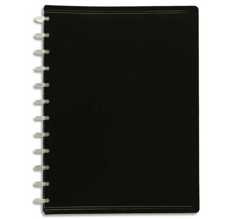 Couverture en polypropylène opaque 5/10e. Reliure à anneaux. Pochettes amovibles cristal lisse 6,5/100e avec ouverture en haut. Livré avec 30 pochettes, 60 vues. Coloris assortis : noir, rouge, bleu.