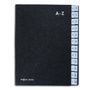 Couverture noire en fibres agglomérées sans PVC. Intérieur en papier recyclé avec 3 perforations. Dos extensible à soufflets renforcés. Onglets en polypropylène blanc.