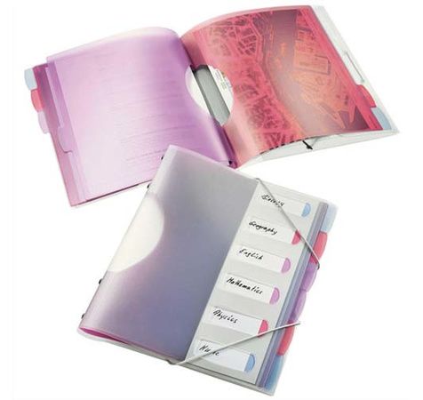 En polypropylène translucide 5/10e. Compartiments multicolores en 3/10e. Touches neutres. Indexation en 1ère de couverture, pochette 3 rabats en 3ème de couverture. Dimensions : 26 x 32 cm. Pour format A4.