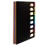 En polypropylène noir 5/10e. Intérieur multicolore en polypropylène 2/10e. Fermeture par élastique. Dos extensible à soufflet. PP 10/10e avec pochettes de personnalisation.